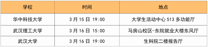武汉:3 月 5 日 /12 日 /15 日 /17 日 19:00-20:30