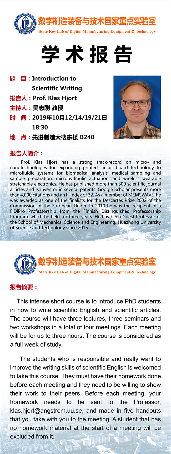 10.12/14/19/21 瑞典乌普萨拉大学教授Klas Hjort学术报告