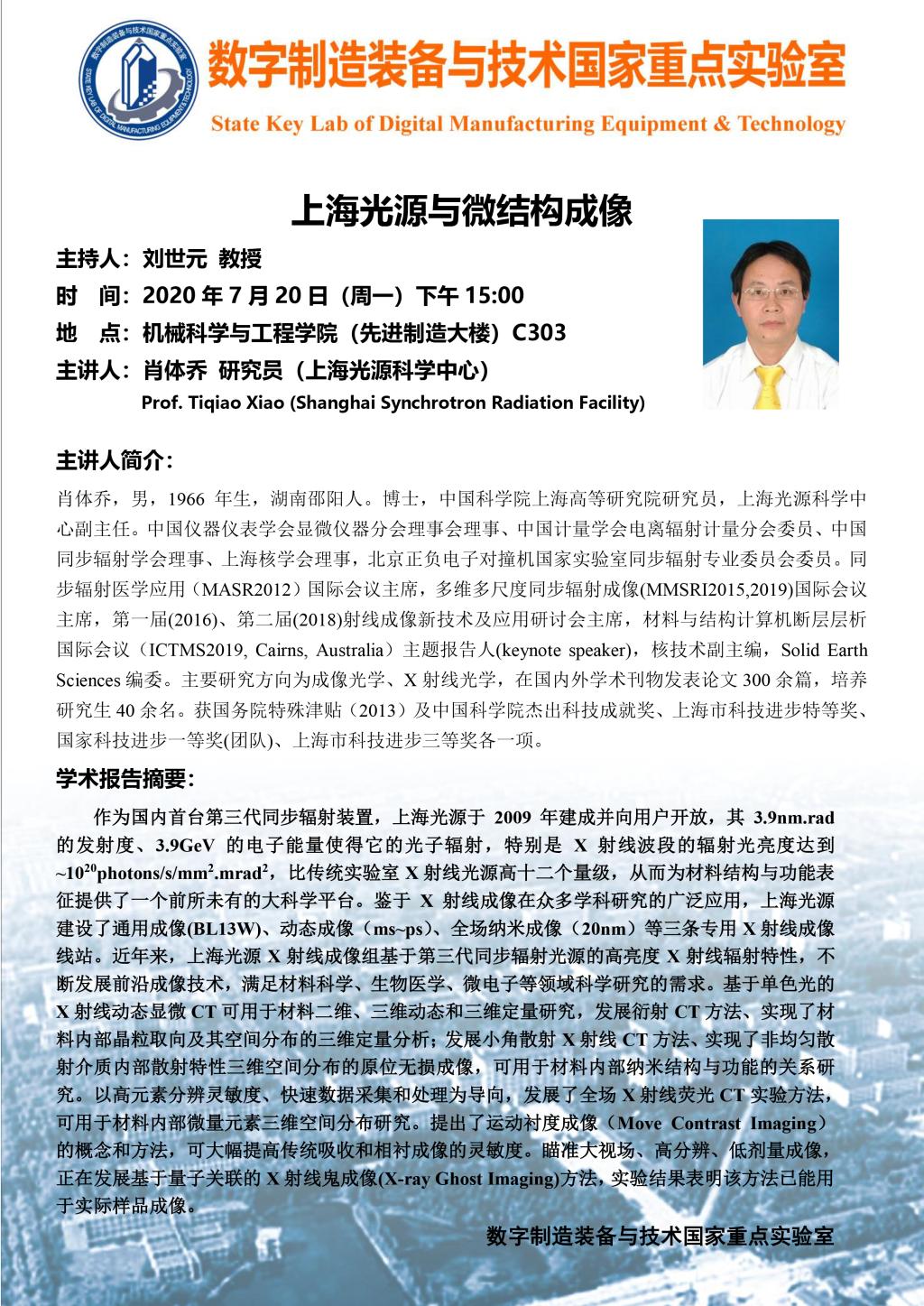 07.20 03:00PM 上海光源科学中心研究员肖体乔学术报告