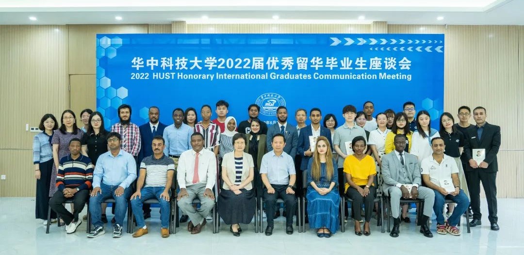 6月24日上午,我校2022届优秀留华毕业生座谈会在校国际学生活动中心举行。全校45名国际学生代表通过线上线下相结合的形式参加座谈。副校长陈建国、国际教育学院院长周莉萍在会上对国际学子们表达了深深祝贺及未来期许。