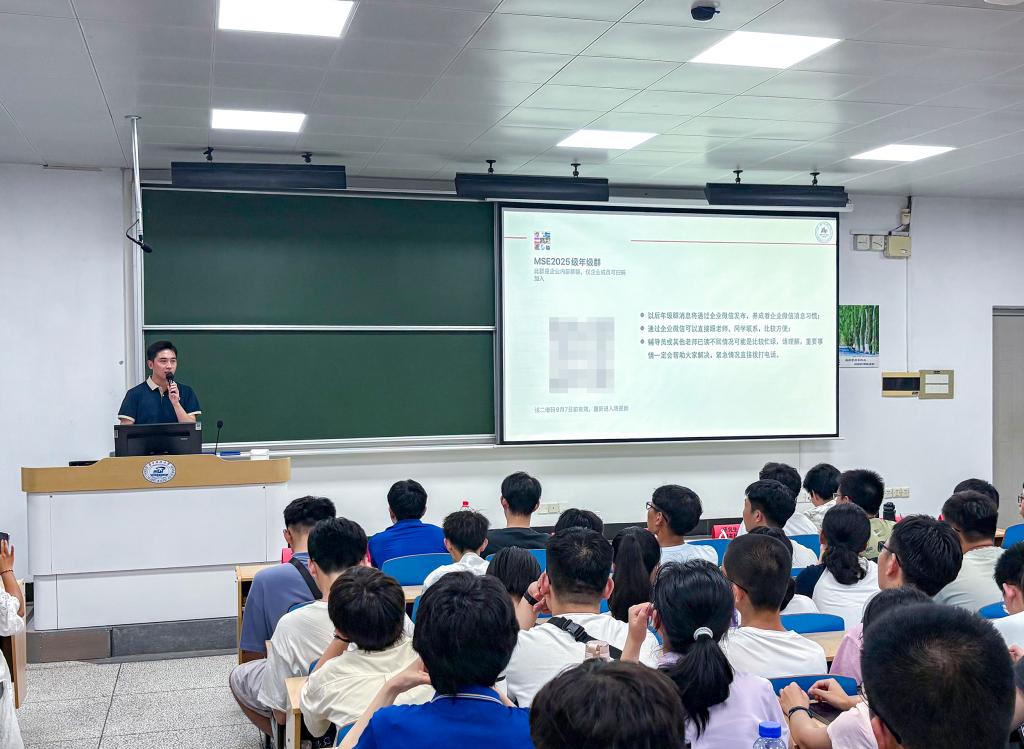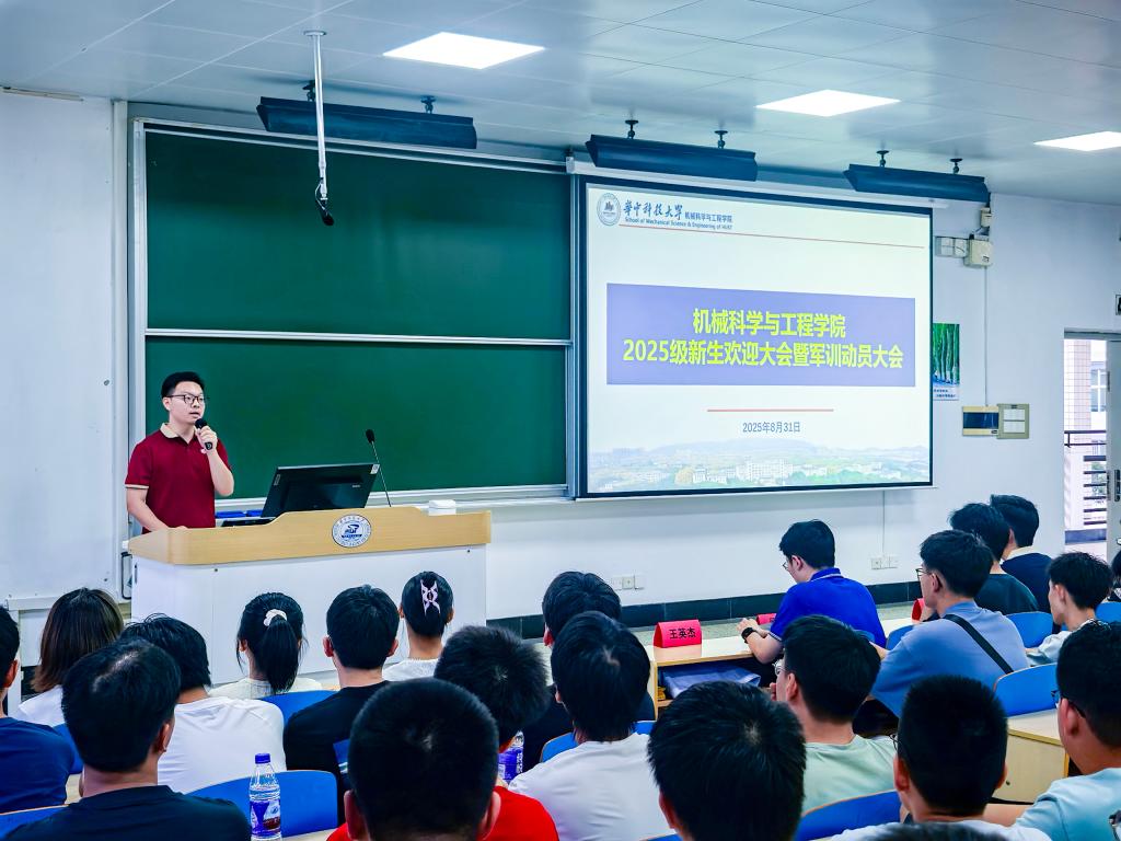 8月31日晚,我院2025级新生欢迎大会暨军训动员大会在东十二教学楼召开。学院中德交流事务主任崔岩、本科2025级辅导员龚凌轩、全体研究生班主任和本科2025级全体同学参加会议。会议由本科2025级辅导员王英杰主持。