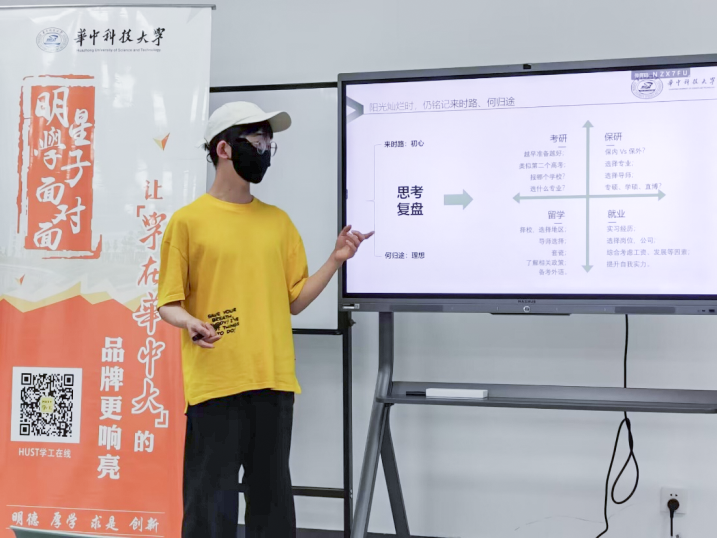 5月25日下午,第64期“明星学子面对面”活动在图书馆东区馆顺利举办。本期活动由学生工作部本科生工作办公室主办,我院承办,邀请我院2020级本科生蒋定成、人工智能与自动化学院2019级本科生夏惟以“点亮希望之光,未来不再迷茫”为主题,从学习经历、科研情况、个人思考等多个方面分享个人感悟,引导同学们做好大学规划,调整学习心态,坚定人生理想,在大学收获精彩人生。