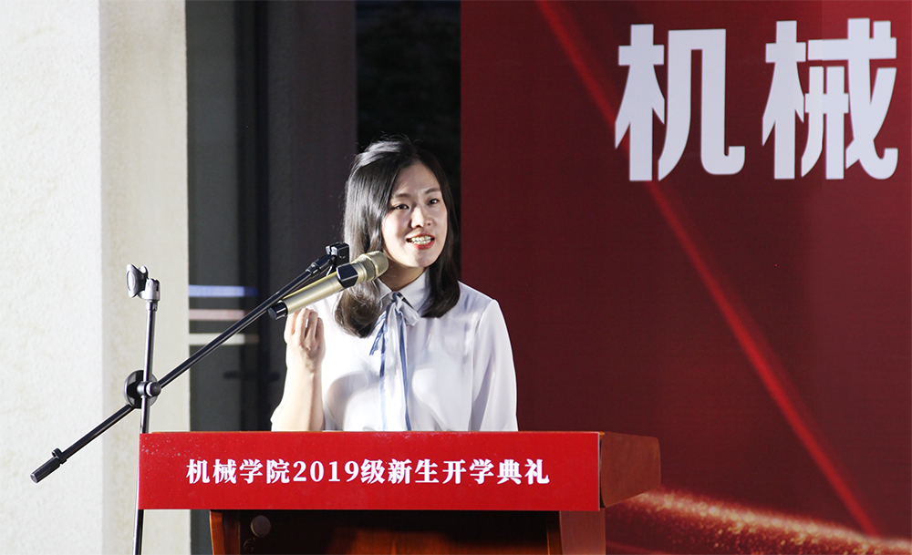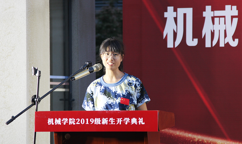 机械类1902班蒋叶露代表全体本科新生发言。她谈到,自己作为一名机械类的新生,感到由衷的兴奋与荣耀,同时也意识到自己所肩负的责任。选择机械就是选择了成为推动祖国进步的一份子,而选择华中大机械学院,则是选择了更高的起点与更加广袤的天地。最后呼吁全体新生带着华中大机械的荣光,努力成为更卓越的自己,努力将我国的制造业带入更宏伟的未来。