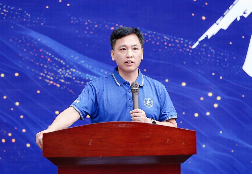 教师代表陈良洲教授上台发言,他结合自身教学与科研经历,勉励新生在大学四年里能学到知识,交到朋友,练好身体,做一个爱国爱校的正能量自己,以赤子之心拥抱彼此差异,用协作精神点亮集体荣誉,用坚韧挺拔书写青春故事。