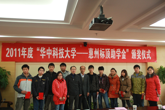 12月15日下午,2011年度“华中科技大学—惠州标顶助学金”颁奖仪式在先进制造大楼A402会议室举行。惠州标顶空压技术有限公司副总经理李伟杰,机械学院党委副书记丁雨葵、学工组组长何杰、本科2011级辅导员平亮及近30名新生代表出席了颁奖仪式。