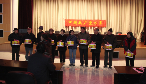 接着是祝寿活动。这是机械学院第六轮为当年整70、75、80、85…岁的离退休老同志祝寿,今年共17位。其中70岁3人、75岁12人、80岁2人,由院领导分年龄段给这些老寿星送上生日蛋糕和慰问金。寿星们都十分感谢组织和学院的关怀。