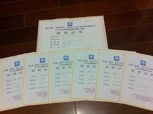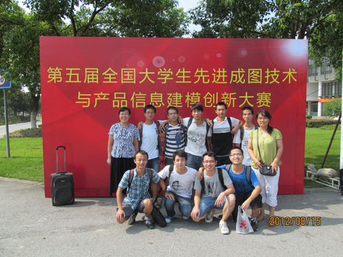 第五届全国大学生先进图形技能与创新大赛,于8月14-17号在上海东华大学举办。代表我校参赛的2010级、2011级九名机械学子,经过比赛现场的激烈角逐,获得机械类团体二等奖,以及个人全能二等奖3个,建模一等奖5个、二等奖1个,尺规一等奖1个、二等奖2个。