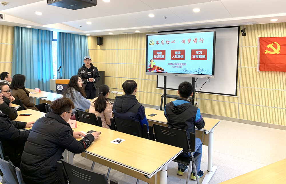 3月4日,机硕1802班党支部于先进制造大楼A304多媒体室召开“不忘初心,追梦前行”主题党日活动,活动由支部宣传委员吴金洲主持。机硕1802班全体党员参加了此次活动。