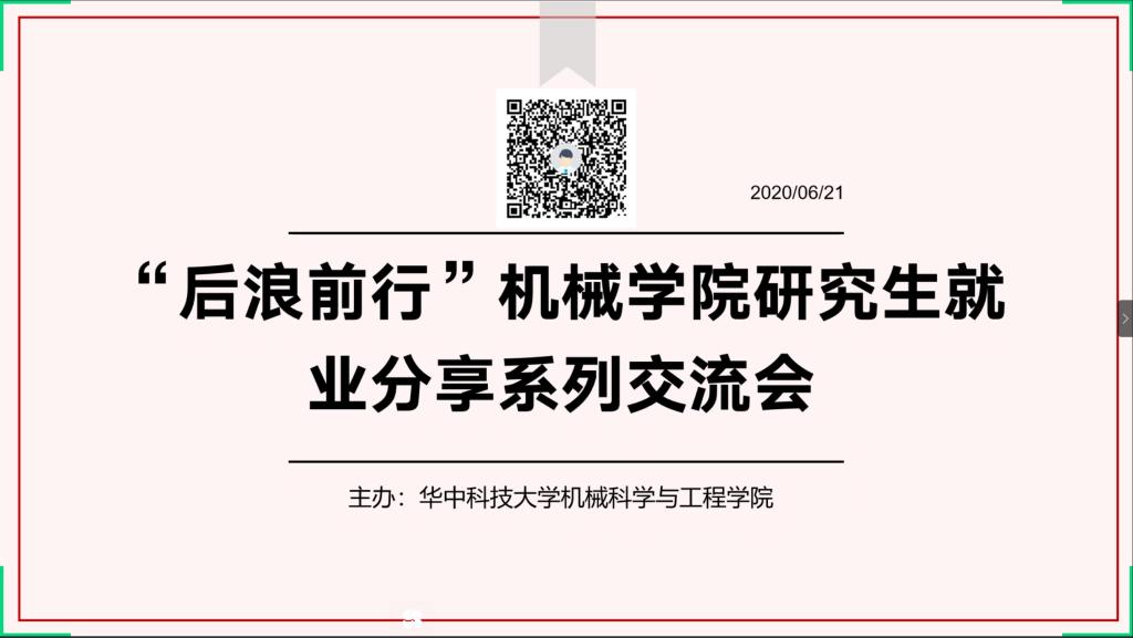 “后浪前行”机械学院研究生就业分享交流会——系列活动安排: