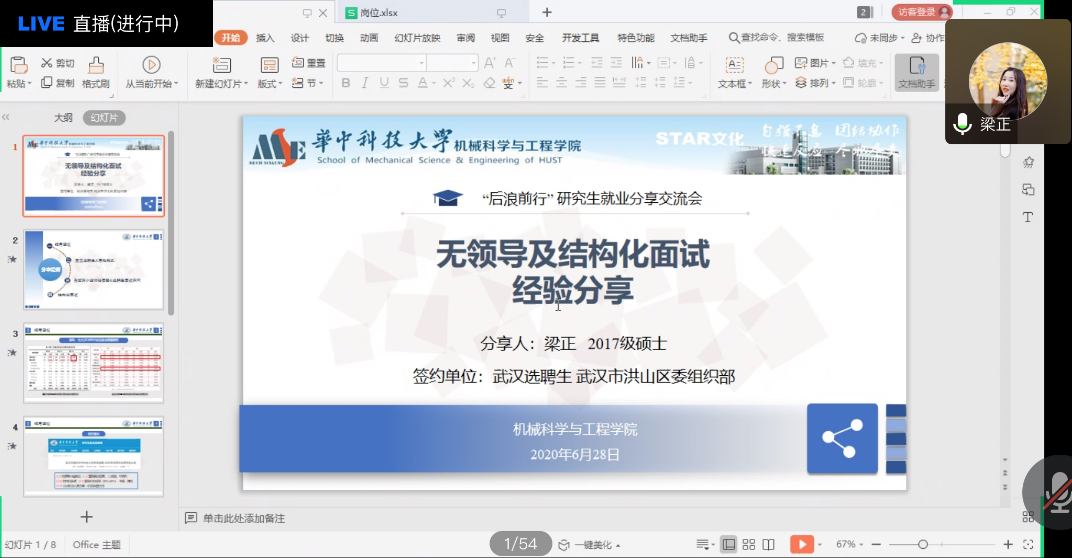 6月28日下午14:30,我院举行的“‘后浪前行’——机械学院研究生就业分享系列交流会(研究所和选调生专场)”在腾讯会议平台顺利举行。本次交流会邀请到了应届毕业生梁正、杨哲、吴川在线分享他们的求职就业经验,为正在求职过程中的同学们带来一些启发和建议。