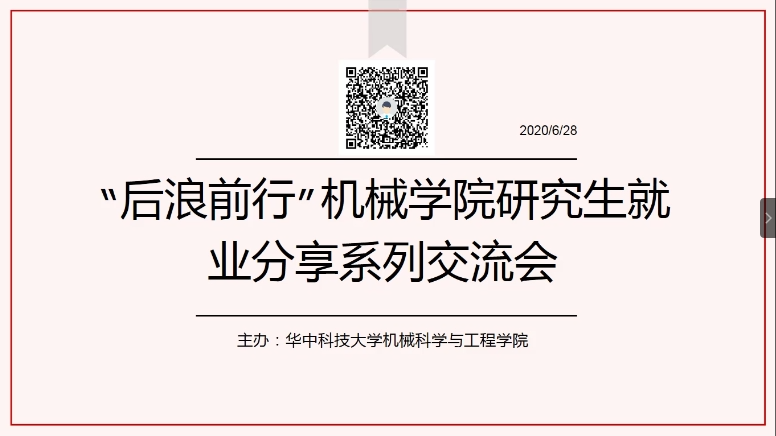 “后浪前行”机械学院研究生就业分享交流会——系列活动安排: