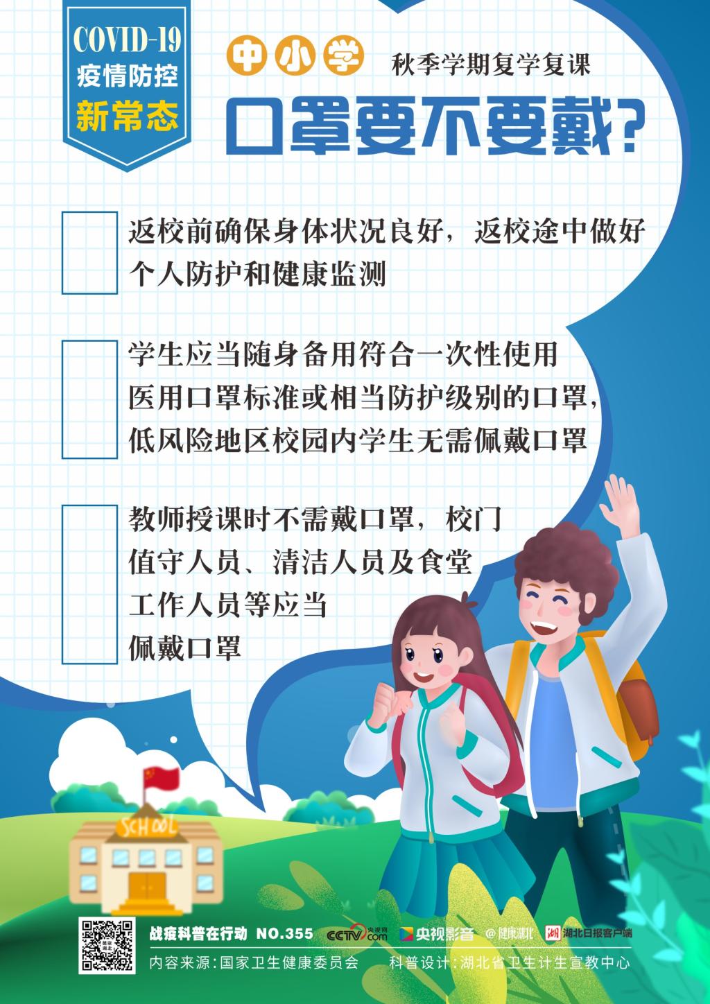 疫情防控新常态 秋季学期复学复课口罩要不要戴?