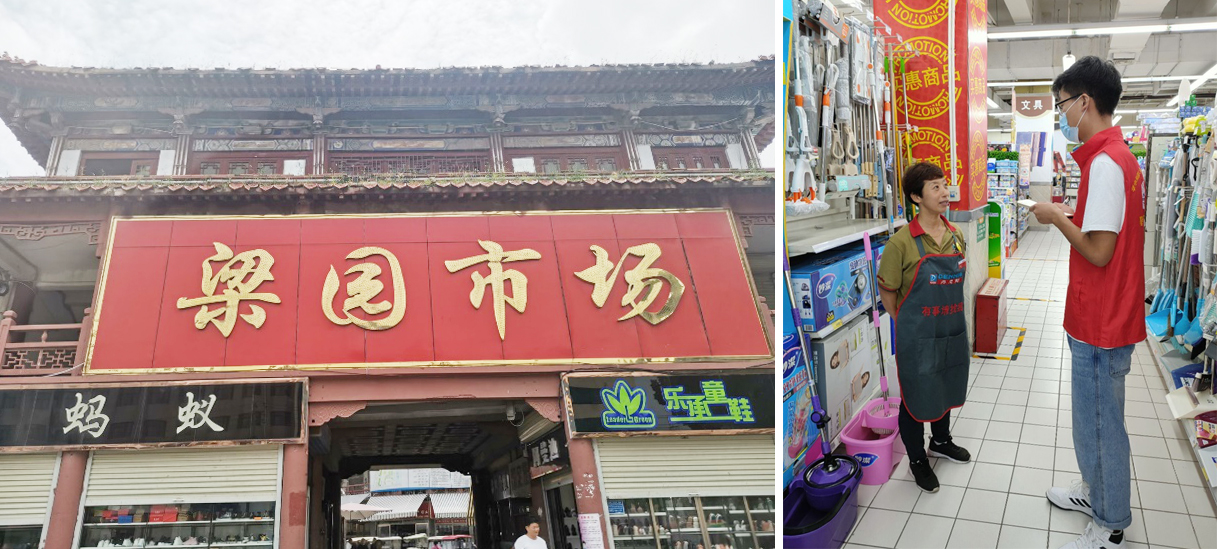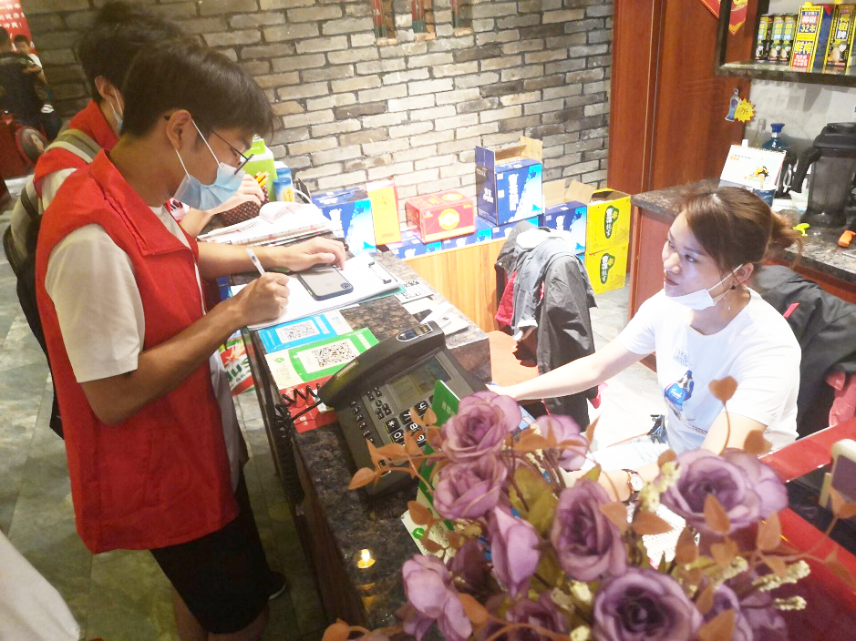 实践队发现,一部分行人没有戴口罩,但各个商铺都要求顾客必须佩戴口罩才能入内。队员随机采访了某手机店的李经理,李经理表示店铺没有因疫情停止工作,每天对店面做三次消毒,同时对进店顾客测量体温,并记录信息。因近期国内疫情大大好转,对顾客入店要求也宽松了一些,佩戴口罩即可。队员们建议商店仍然要保持警惕,做好防范措施。
